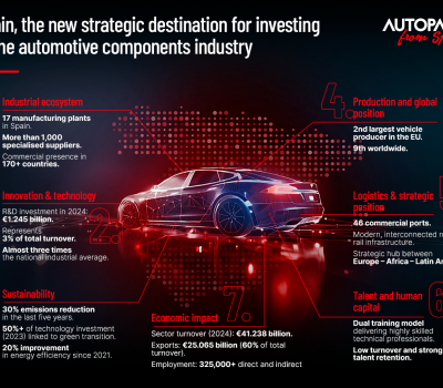 España se ha consolidado como uno de los países más atractivos para invertir en el sector de la automoción. Así lo confirma el informe "Razones para invertir en España", elaborado por Deloitte para SERNAUTO, que analiza los factores que refuerzan la posición de España como un hub clave para la nueva movilidad.